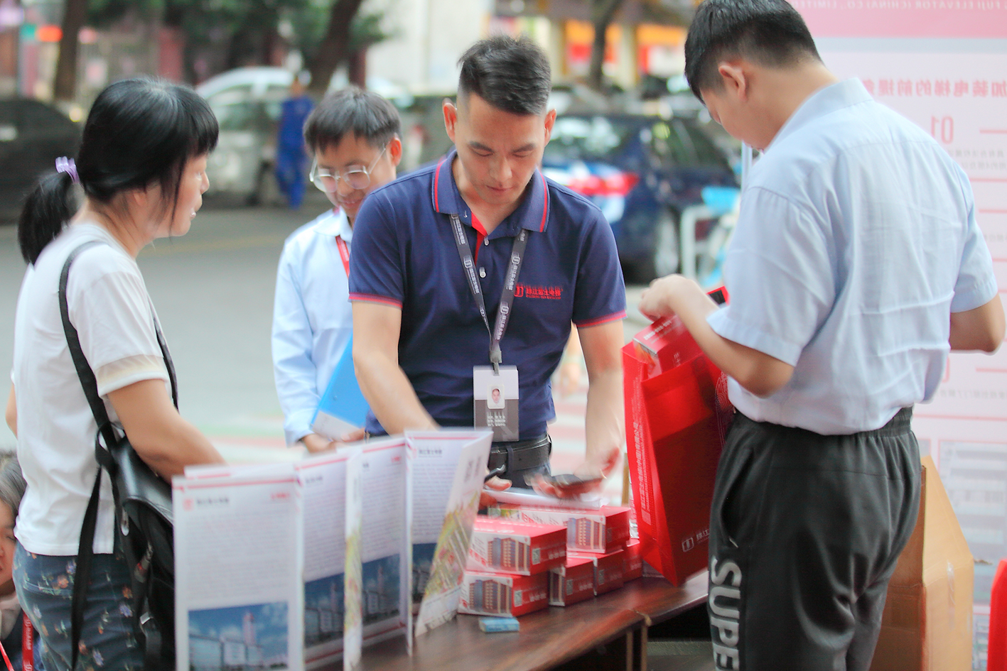 活動(dòng)現(xiàn)場(chǎng),公司還選派舊樓加裝經(jīng)驗(yàn)豐富的技術(shù)人員,對(duì)加裝電梯從制作、安裝、后期使用等方案進(jìn)行全方位講解,同時(shí)現(xiàn)場(chǎng)也向廣大業(yè)主發(fā)放“安全用梯宣傳手冊(cè)”,通過簡(jiǎn)單易懂的漫畫傳遞怎么來安全使用電梯。